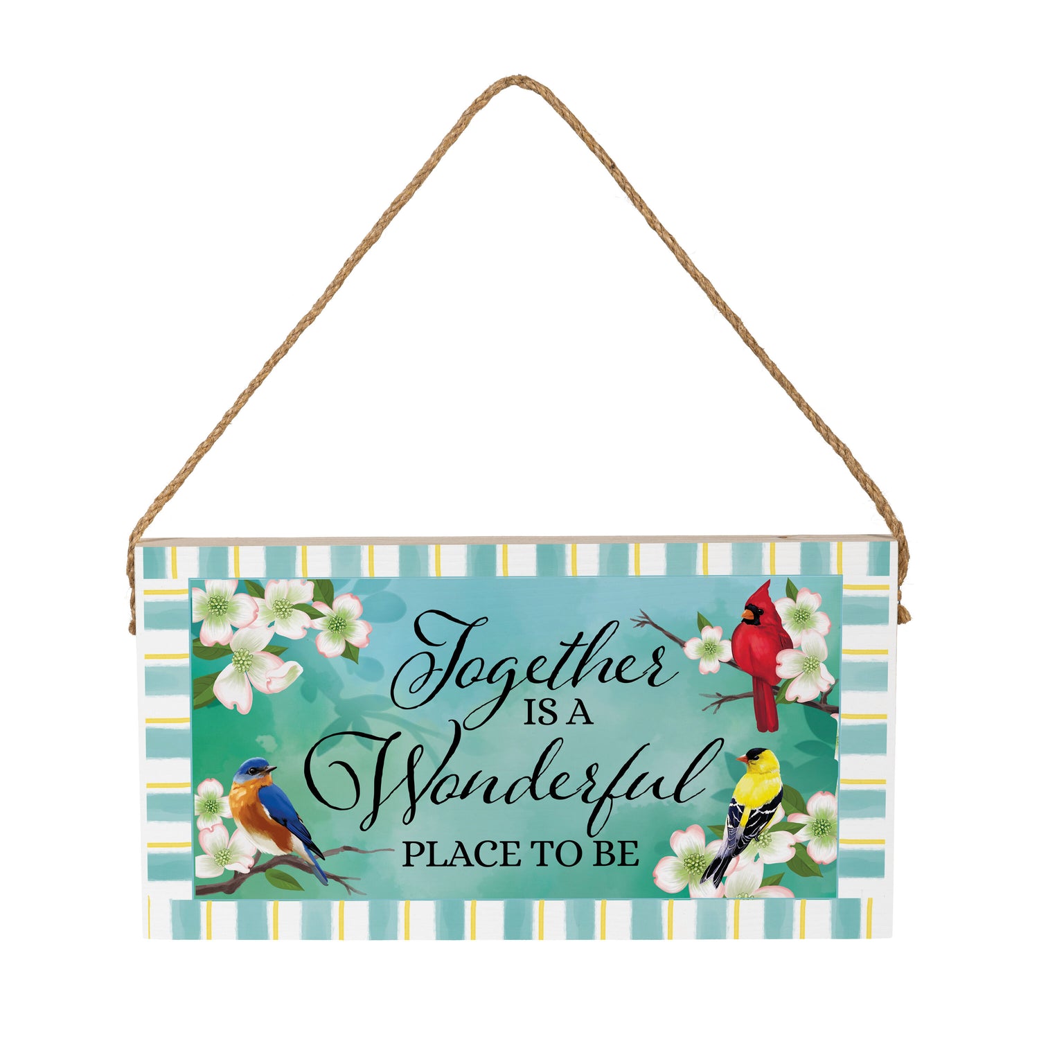 Bring the warmth of spring into the home with this stunning sign. Made with vibrant colors and an eye-catching, this piece brings fun to any home. Designed and printed in the USA. Hang it in the garden to show it off. Gift it to a friend or family member who loves to decorate.