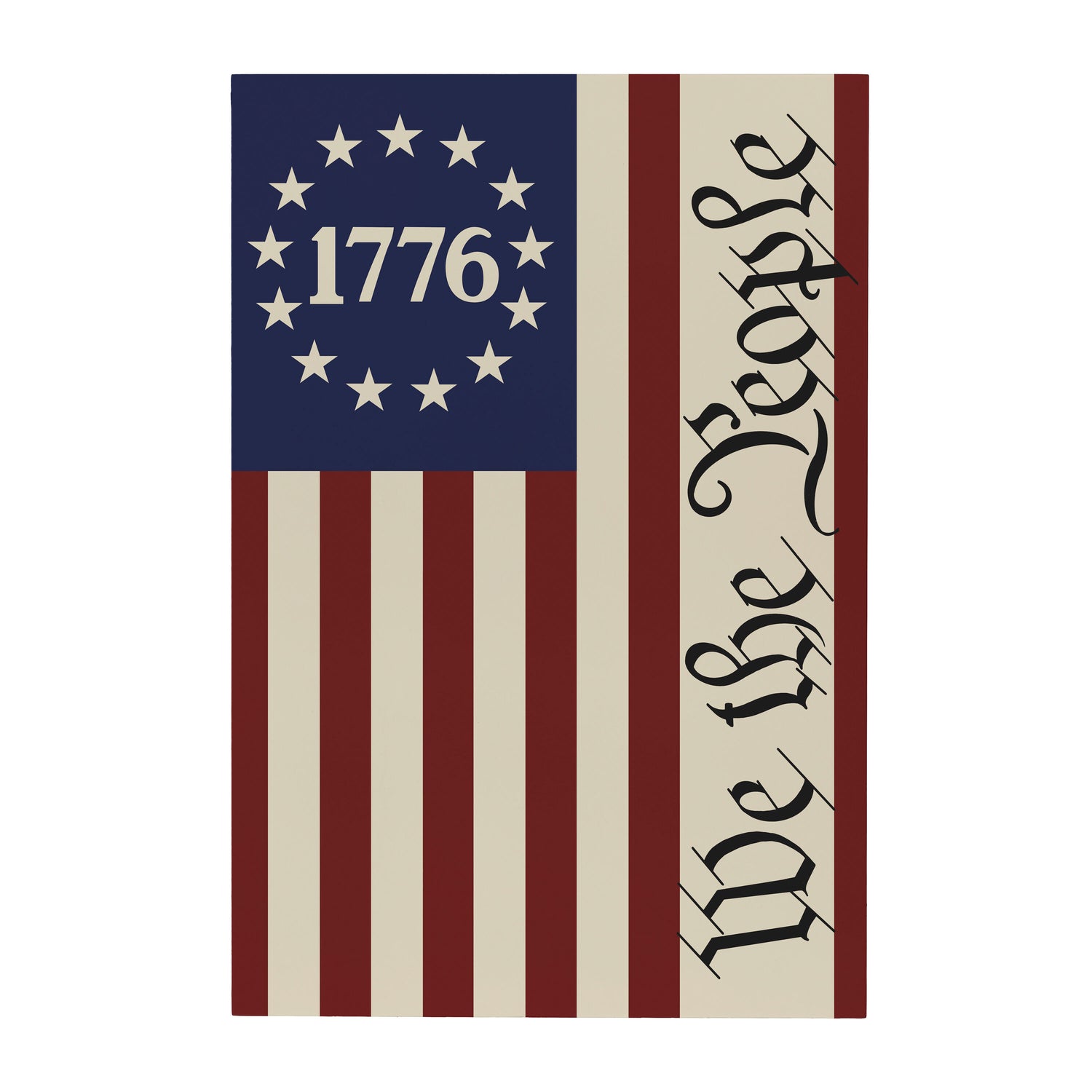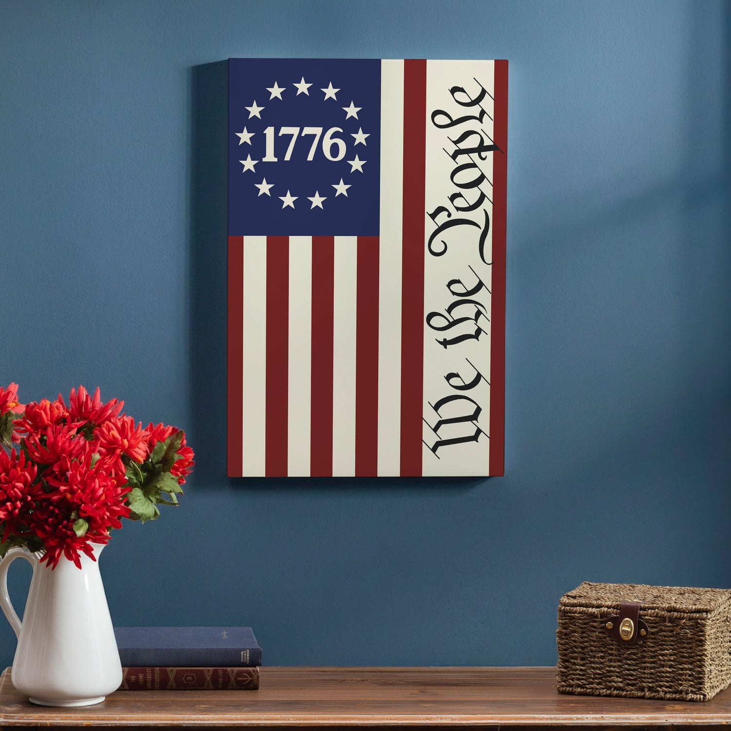 - Indoor rectangular wood wall decor with a patriotic We The People theme