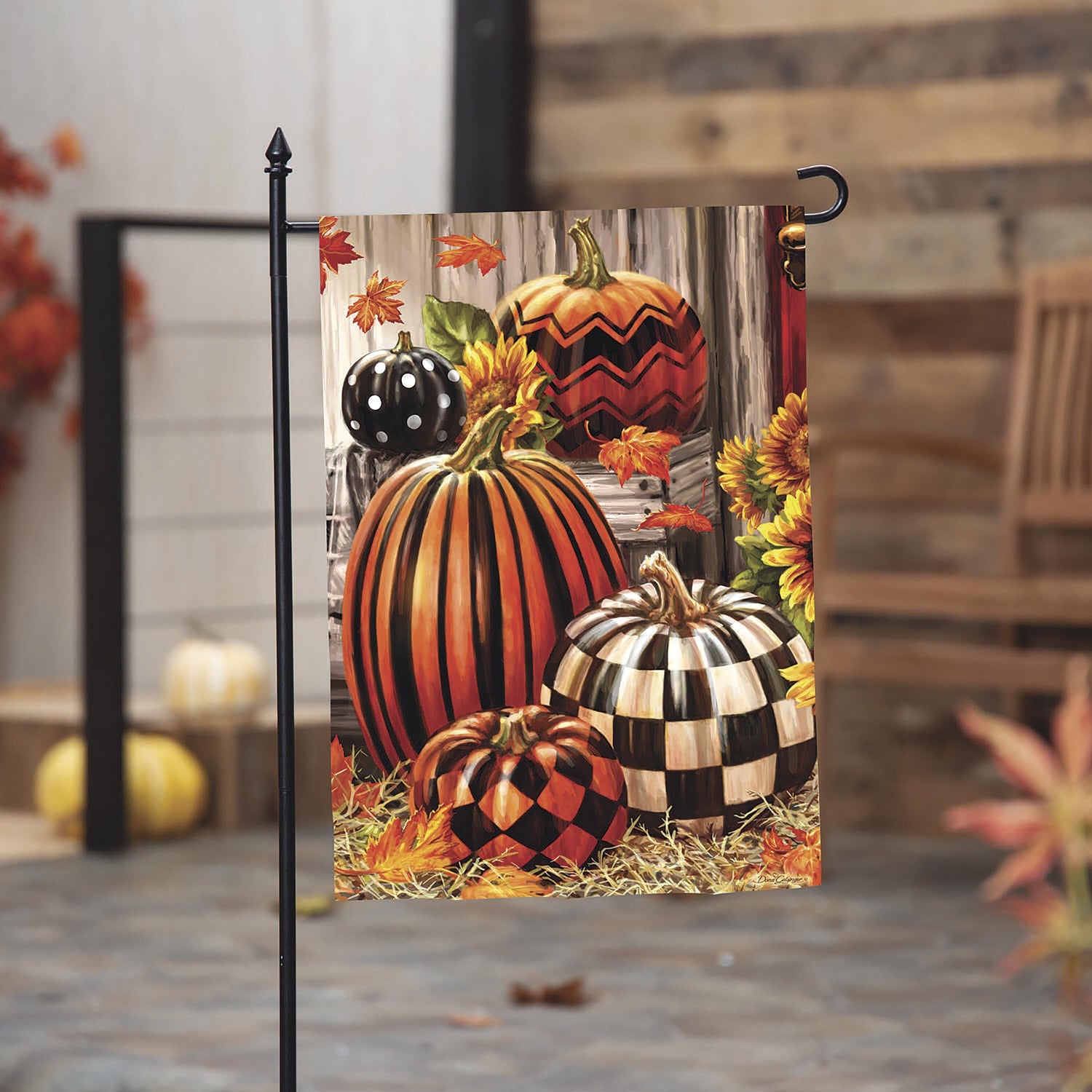 Fall Harvest Pumpkins Burlap Garden Flag