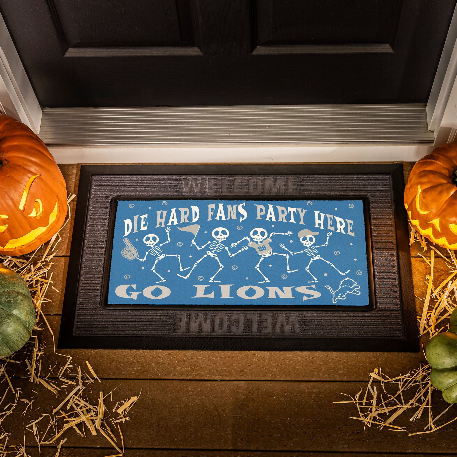 Detroit Lions Flocked Coir Halloween Sassafras Switch Mat, 22"x10"